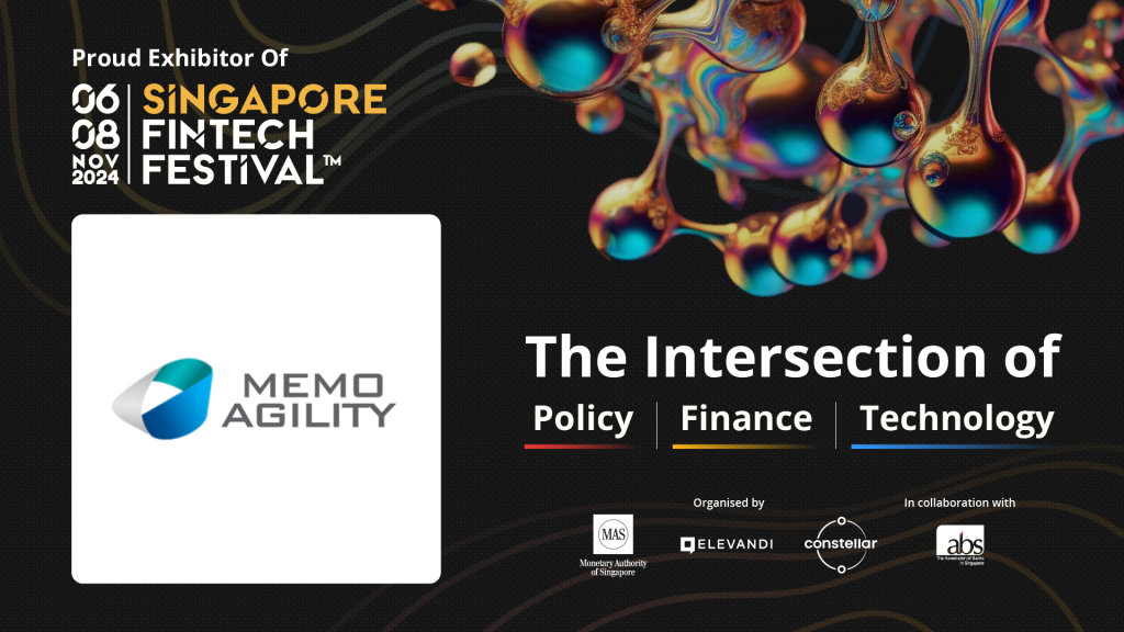 Weโ€™re excited to announce Memo Agility’s showcase at Singapore FinTech Festival (SFF) 2024! With last yearโ€™s event drawing over 66,000 participants from 150+ countries, this year promises even more game-changing insights and innovations across AI, quantum computing, digital assets, and green finance.